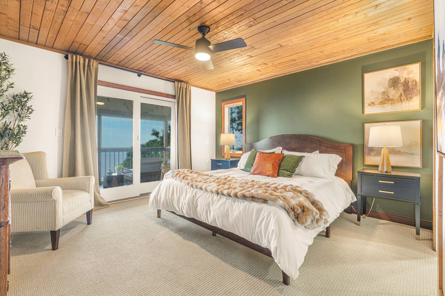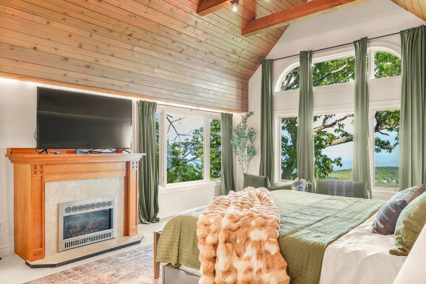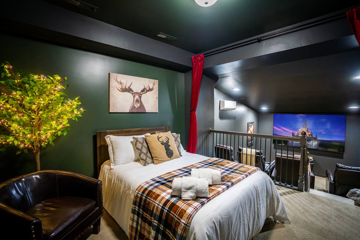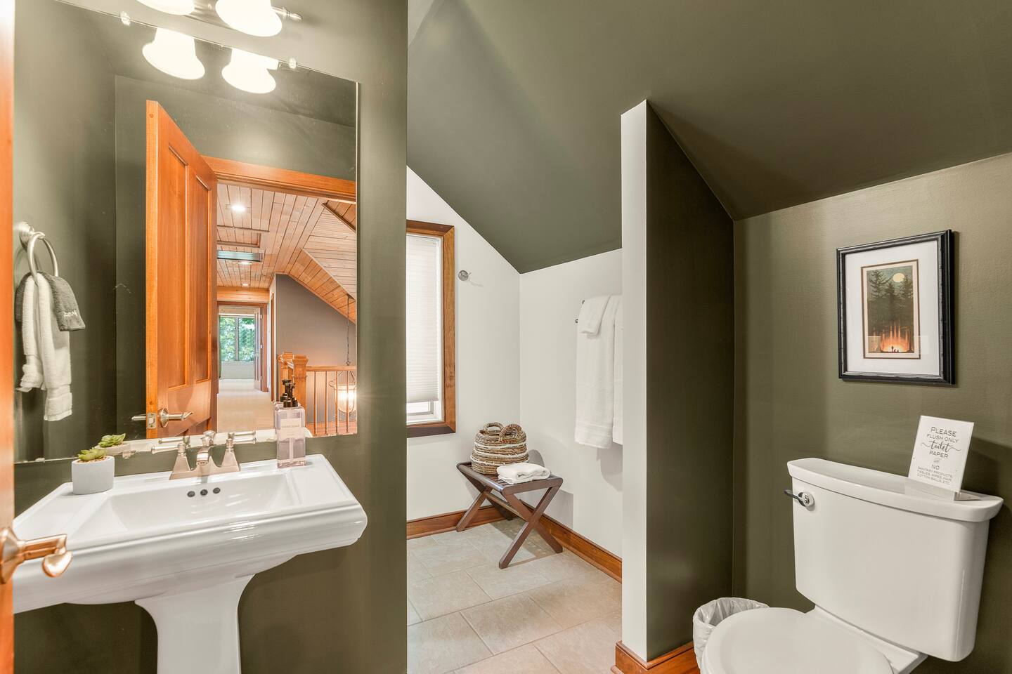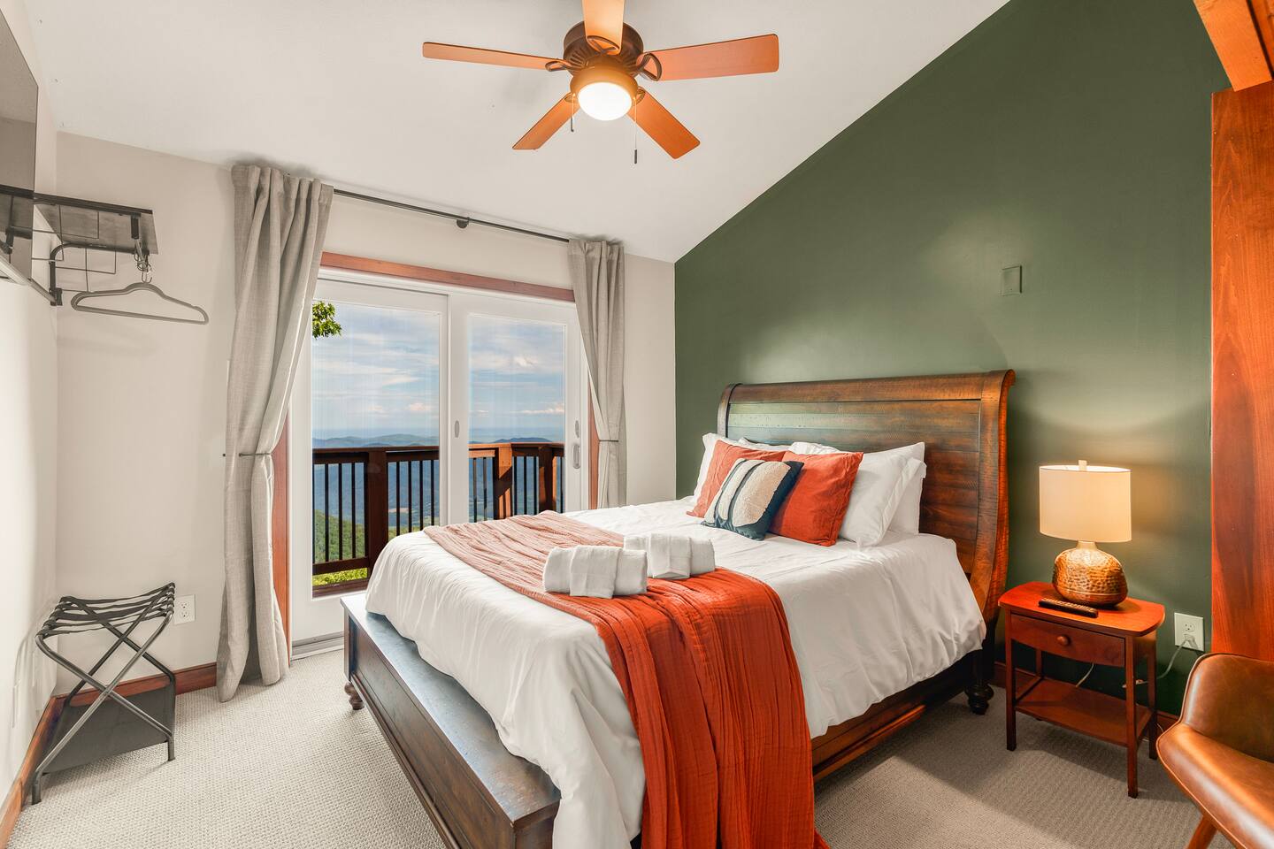 There's a ton to do in the area! Stargazer is about a mile to the slopes and a few minutes’ drive to all the dining and entertainment at Wintergreen. Some of the best hiking trails in the state are off the Blue Ridge Parkway (15 minutes from the home). Also nearby are two sandy-beach-entrance lakes plus a community pool for swimming, and over dozen wineries, breweries, and distilleries- all within a 30 minute drive. The home layout is as follows: Decks: - The small deck directly off of the living room features two Adirondack chairs and a high-top table for 4 to soak in the views - This deck also connects to the larger lower deck, which features a hot tub, barrel sauna, gas firepit (propane provided), grill with prep table, and a dining set for 10. - Additionally, there is a small balcony that connects to both the primary bedroom and a hall bedroom with a few chairs (chairs not pictured). Main level: (Note: there are zero steps required to enter main level from driveway) - Grand living room with big screen TV, wood-burning fireplace, bumper pool table, and separate lounge seating area. Both sofas pull out to beds if needed. - Screened in porch with endless views - Dining table can seat 10, plus room for 4 more at the kitchen bar - Fully stocked kitchen with granite counters, stainless appliances, and gas range. - BR 1: Master bedroom with king bed and ensuite bathroom - Half bath - Laundry room with full size washer and dryer Upper level: - BR 2: Primary bedroom with king bed, fireplace, vaulted beamed ceilings, and access to balcony. Ensuite bathroom features double vanities and tile shower - BR 3: Queen bedroom with balcony access - BR4: Queen bedroom - Hall bath with shower Lower level: - Game room with ping pong table, shuffleboard, darts, TV, and additional refrigerator - BR 5: Queen bedroom with access to lower deck - BR 6 / theater room: Upper portion of this room has a full bed, and lower portion of this room is set up as a theater with 6 leather chairs and massive TV - Hall bath with double vanities and tiled shower/tub combo