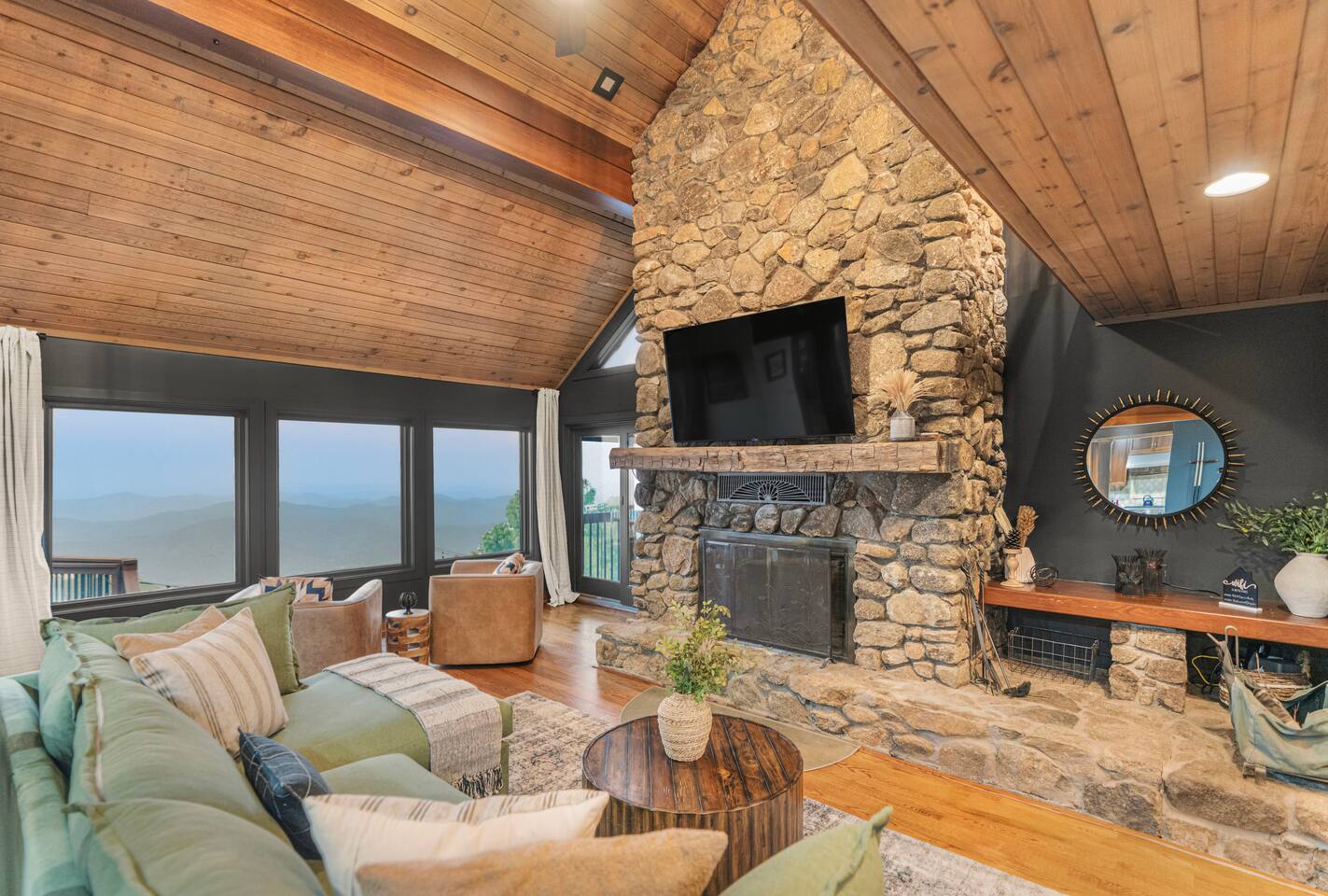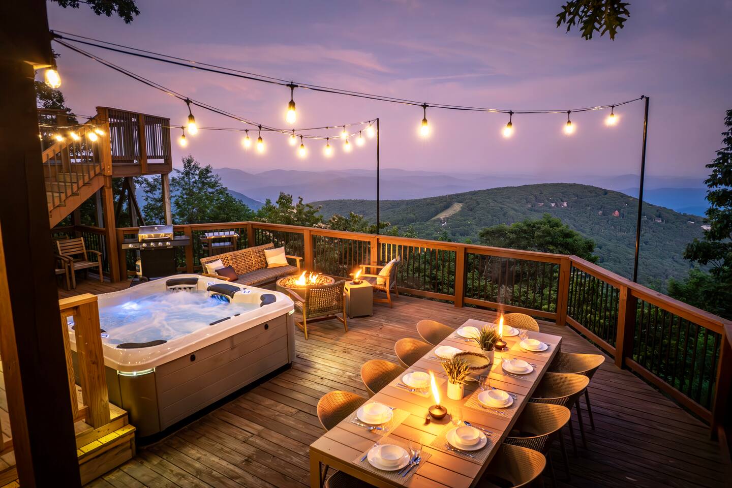 Welcome to Stargazer, one of Wintergreen's premier properties. The views are second-to-none throughout the home, and especially from the deck which boasts a hot tub, sauna, firepit, and ample dining space. Inside, you'll love the impeccable design, open floor plan, theater room, and game room. With 6 bedrooms plus two pullout sofas, the home sleeps 16. Plus, pet friendly! Managed by Chris at New School Hosting- click on my profile below to see more reviews.